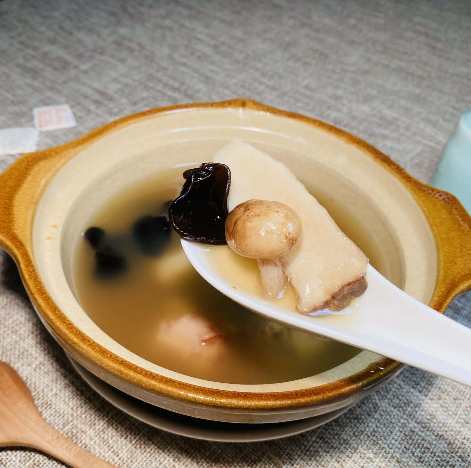 三、小雞腿、手工虱目魚丸、燕餃、蝦球、魚卵捲、杏鮑菇、花菇、香菇、川耳、紅棗、枸杞。