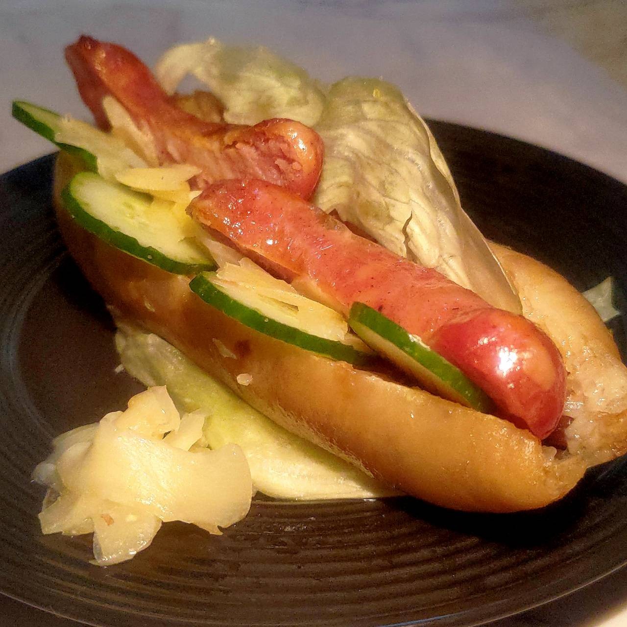 紹興酒醃製的鱷魚香腸,富含天然 Omega-3,入口鮮香並散發微醺酒韻。搭配 Q 彈飽滿的花生米腸,再佐以爽脆生菜與清新小黃瓜,融合台式泡菜的酸香與嫩薑的清爽,一口咬下,層次豐富、香氣滿溢。
